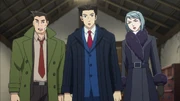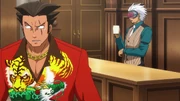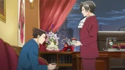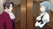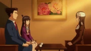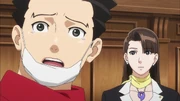 - В аниме добавлена сцена, где Эджворт симулирует спазмы желудка, чтобы они могли получить улики из офиса фон Кармы, в то время как Ларри притворяется Эджвортом.